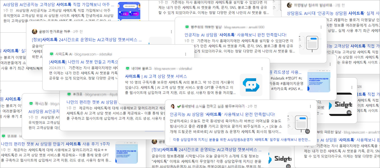 AI를 적극 활용하지 않는 기업은 경쟁에서 뒤처질 수 있습니다. 사이드톡을 도입하여 혁신의 주도권을 잡으세요. 이미 많은 사용자가 사이드톡으로 AI의 혜택을 누리고 있습니다. 여러분도 그 주인공이 될 수 있어요.